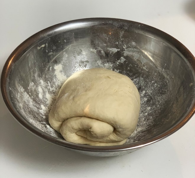 Tiro il mio impasto fuori dal frigo e lo capovolgo sul piano da lavoro ben infarinato. Lo lavoro in modo da permettergli di crescere in altezza ed in modo omogeneo, allargandolo fino ad ottenere un rettangolo. Vado a piegare in lato del rettangolo fino alla metà della sua altezza, così poi con l’altro lato. Ottengo un rettangolo più sottile i cui lati vado a piegare alla stessa maniera. Ho formato una sorta di pallina che rigiro e ripongo nella bowl infarinata per circa 45 minuti, dopo i quali ripeto l’operazione delle pieghe per un totale di 4 volte.