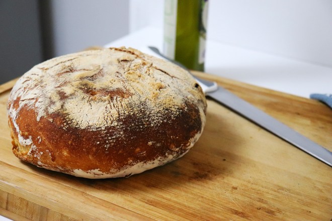 Pane fatto in casa: una pagnotta di grano tenero cotta nel forno di casa, croccante fuori e morbida dentro!