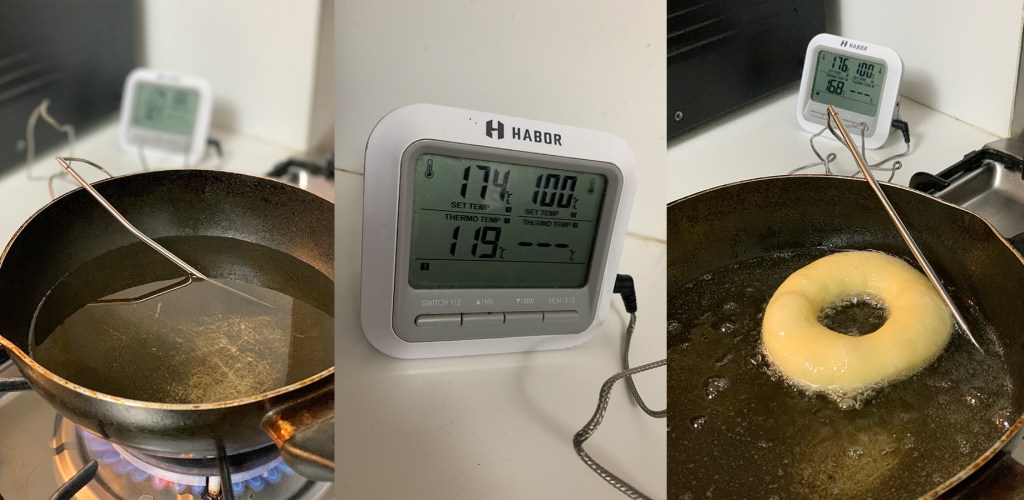 In una padella alta e non eccessivamente grande scaldo l‘olio e, monitorando la temperatura, tenendola constantemente a 170 gradi, inizio a friggere le graffe, due o tre per volta. Non ne cuocio di più perchè andrei ad abbassare la temperatura dell’olio, fondamentale per un risultato perfettamente asciutto. Le graffe vanno cotte due minuti per lato.