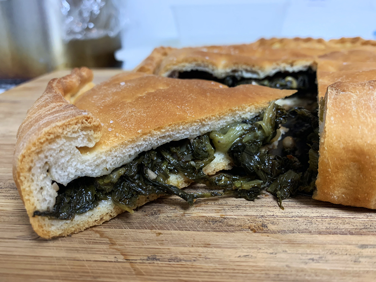 Si tratta di un rustico davvero semplice nella realizzazione: due strati di pasta di pane racchiudono il ripeno di scarola cotto in precedenza in padella con olive nere, aglio, acciughe, pinoli, uva passa e peperoncino. C’è da leccarsi i baffi letteralmente!
