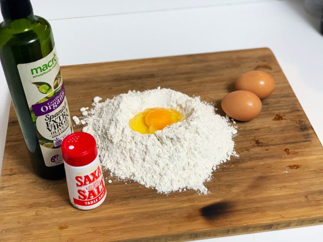 - 4 eggs (or if you want you can use 10 egg yolks for a more yellow dough)
