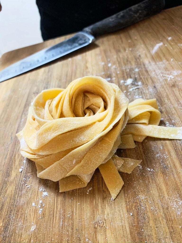 There is nothing better than homemade pasta and making a perfect fresh pasta dough is quite simple: just flour, eggs, a little bit of patience, and a good rolling pin. When making homemade pasta, you start with one recipe and you can make any shape pasta you choose, from this tagliatelle to spaghetti, pappardelle or lasagna sheets.
